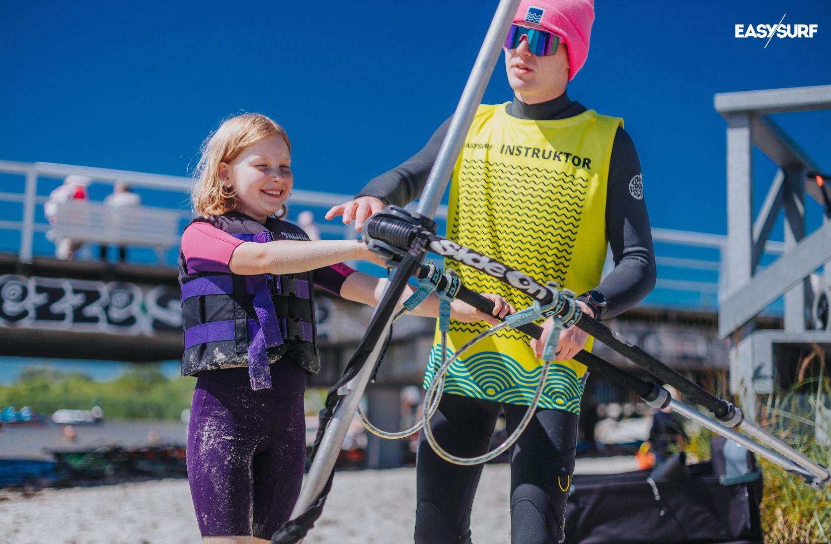 Bez paniki – mamy plan B! W przypadku braku wiatru realizujemy alternatywne zajęcia: surfing, SUP, wake lub dodatkowe animacje na plaży. U nas dzieci się nie nudzą, nawet przy flaucie!